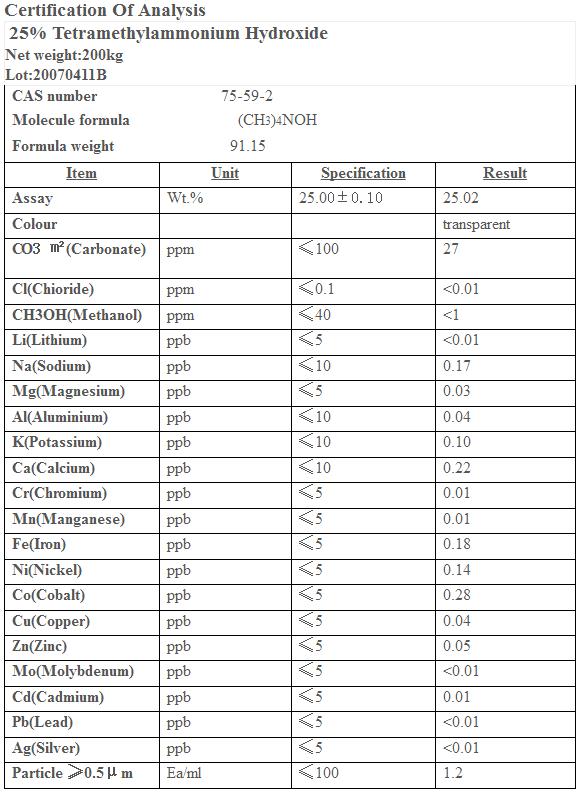英 文 名:Tetramethyl Ammonium Hydroxide 缩 写: T M A H